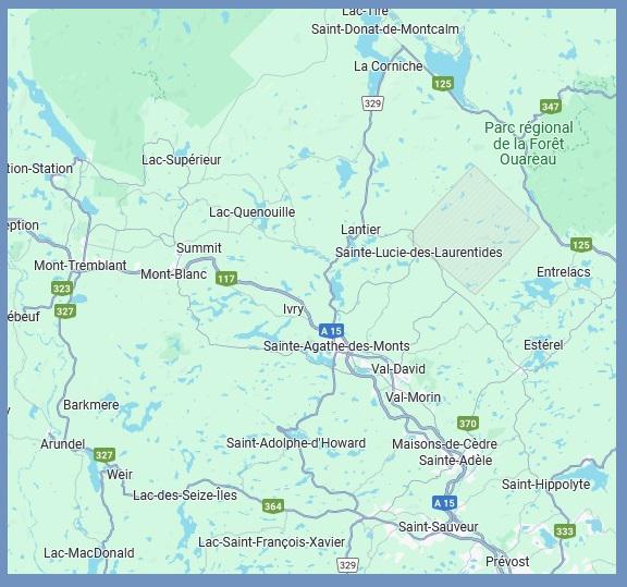 St Sauveur - Ste Adèle - Morin Heights - Wentworth - St Adolphe - Ste Agathe - St Donat de Montcalm - Trembalnt - Val david - Val Morin Mont Blanc - Piedmont - Prévost Ste Marguerite -