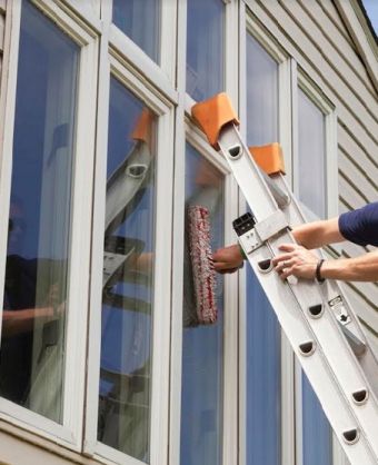 Lavage des cadrages extérieurs : Ils sont lavés et essuyés